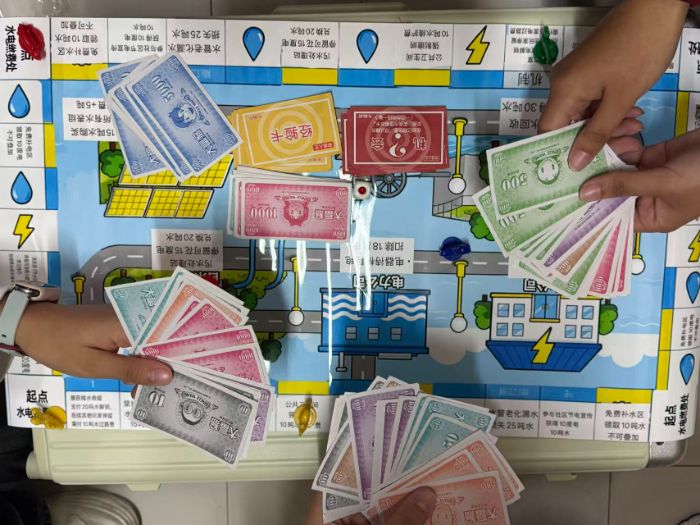 活动伊始,支部成员立足“从群众中来,到群众中去”的工作理念,设计了循序渐进的实践方案。在“发现”环节,调研小组深入宿舍、食堂等场所,通过随机访谈系统收集同学们在日常用水用电中存在的实际痛点、行为习惯及改进建议,为后续分析奠定了扎实的一手资料基础。进入“分析”环节,支部成员巧妙运用信息管理与信息系统专业所长,针对前期调研发现的用水用电高峰时段、习惯性浪费等问题,在工作日与周末分别对宿舍水电使用情况进行定时记录与数据采集。更引入AI工具对数据进行整合、建模与可视化分析,使抽象的能源消耗以直观的“跳动数字”呈现,让参与者深刻感受到资源浪费的严峻性,精准挖掘校园节能的潜在路径。为解决实际问题并增强活动趣味性,支部在“解决”环节跳出传统说教模式,创新设计了“水电版”大富翁互动游戏。该游戏将收集到的节水节电知识、实用技巧及校园节能方案融入游戏机制,通过寓教于乐的方式,使参与学生在轻松氛围中掌握多项日常节能方法,累计吸引80余名学生积极参与。为扩大理念影响力,活动最终走向“弘扬”阶段。支部成员走出校园,走进周边社区开展线下实践宣传。他们精心设计了与节水节电主题相关的卡通形象徽章等文创产品,结合当下年轻人喜爱的潮流元素,有效提升了公众的关注度和参与兴趣,成功将绿色节能理念从校园推向社会。活动期间同步发布的线上推送累计阅读量达千次,初步形成了“校园带动社会”的传播效应。