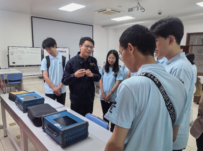 随后,实践队来到继电保护实训室。在这里,先进的继电保护装置与实验设备整齐排列。技术人员从继电保护的基本原理出发,结合实际案例,生动地阐述了继电保护装置如何在电力系统发生故障时迅速、准确地切断故障电路,保护电力设备和系统的安全。队员们在技术人员的指导下,近距离观察继电保护装置的内部结构与工作原理。大家针对继电保护装置的选型、调试、维护等问题与技术人员展开热烈讨论,对继电保护在电力系统中的重要性有了更为深刻的认识。