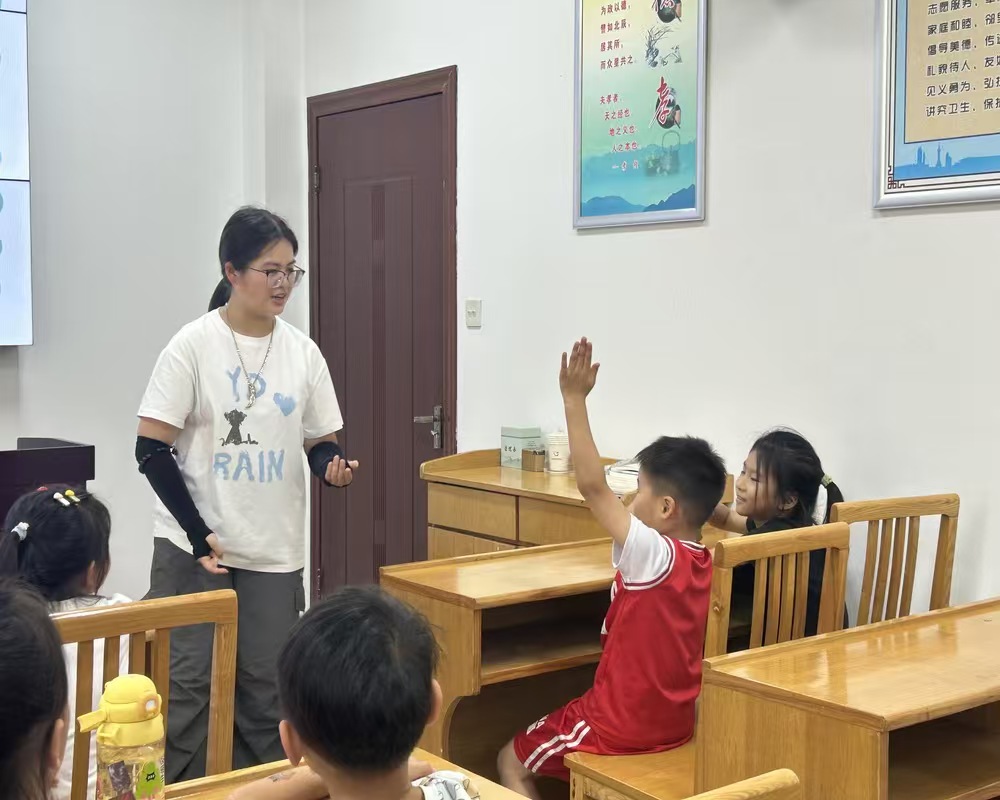 2025年7月18日,南京师范大学泰州学院“红心研墨”暑期社会实践团队在泰州美东安社区开启英文主题实践活动。作为团队暑期实践关键一环,活动紧扣“游戏化学习,趣味学英文”理念,把知识融入互动,助力儿童轻松开启英语学习之旅。课前精备,筑牢趣味基石活动前,团队针对社区儿童特点系统筹备。组织志愿者培训,明确游戏化教学流程与分工,重点打磨英文儿歌领唱、词汇游戏引导等环节的细节;检查社区场地音响、投影仪等设备,确保教学工具正常运行;准备单词卡片、卡通道具及积分小奖品,为互动环节提供充足支撑,让教学过程既有趣味性又具条理性。游戏串联,激活语言感知活动开场,志愿者带领孩子们唱响《Baby Shark》等英文儿歌,搭配拍手、跺脚等肢体动作,借助旋律帮助记忆单词。随后进入“词汇大冒险”游戏,用卡片展示动物、水果等主题词汇,孩子们猜对即可“闯关”,若有失误,志愿者便通过趣味动作、拟声词重新讲解,例如学习“tiger”时模仿老虎吼叫,让词汇记忆过程轻松高效。(图为志愿者在为小朋友们讲解)“情景小剧场”环节中,志愿者设定“餐厅点餐”“超市购物”等生活场景,引导孩子们分组进行简单英文对话。从“Can I help you?”到“I’d like an apple.”,孩子们在模拟场景中练习口语,逐渐从羞涩拘谨变得主动参与,表达也愈发流畅。(图为志愿者听小朋友回答)双向成长,蓄力未来教育志愿者们表示,看到孩子们从不敢开口到主动展示,深刻体会到游戏化教学的感染力。此次实践不仅提升了自身的沟通与课堂把控能力,更让大家明白教育需贴合儿童天性。孩子们也反馈,英文学习变得像玩游戏一样有趣,十分期待再次参与。对团队而言,活动验证了游戏化教学的可行性,但也暴露出宣传覆盖面不足、部分环节时间把控不够精准等问题。未来,团队计划扩大线上宣传范围,优化环节时长,让英文趣味课堂走进更多社区,以青春力量点燃儿童英语学习热情,助力传统文化与外语教育融合,让暑期实践持续发光发热。