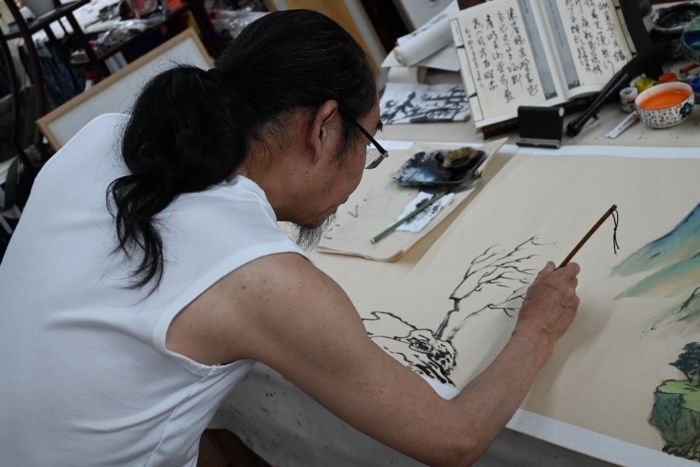 实地考察活动开展当日,考察小组的成员们心绪激荡,满怀热忱——在画外桐坞美术馆,团队成员欣赏了众多来自中国美院、中央美院等高校研究生作品,馆内国画大师挥毫泼墨,山水画跃然纸上,让成员们大饱眼福。据工作人员介绍,该村已吸引90个艺术家工作室入驻,形成“家家有画室、户户飘茶香”的独特景观。