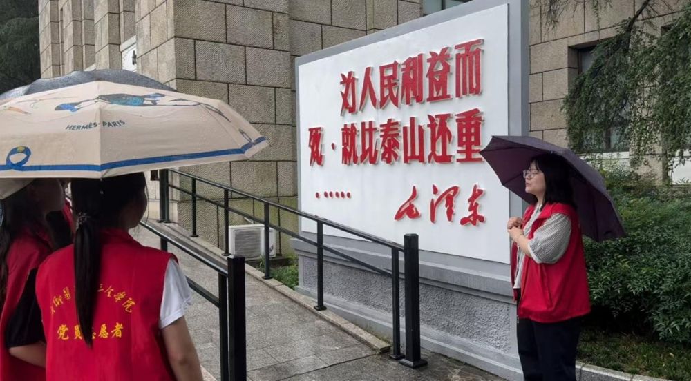 2025年6月21日,细密的雨帘笼罩着鄂豫皖苏区首府烈士陵园。由马克思主义学院陈豆豆老师和崇德书院尚千红老师带领的赴信阳“聆听革命故事,赓续奋斗精神”实践团队在朦胧雨色中踏入这片镌刻着血色记忆的土地开展纪念革命先烈的活动。淅淅沥沥的雨声,恰似历史的回响,引领着众人回溯烽火岁月,感悟红色精神的永恒力量。
