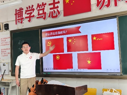 实践团成员们还将精品课程“我的祖国我奉献”、“国旗在我心中”带给祥城镇一中的孩子们。有了这些肥沃的营养,祖国的花朵们一定能够茁壮成长。
