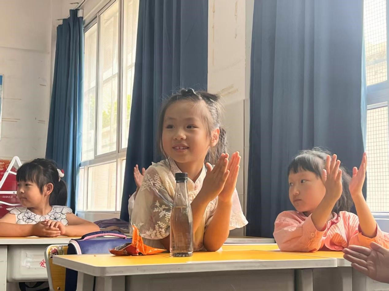图为模拟政协活动“汇报展示”环节中,小朋友们认真听其他“小委员”分享活动成果,为精彩发言鼓掌,活动氛围轻松活泼、充满乐趣。程靖雯供图