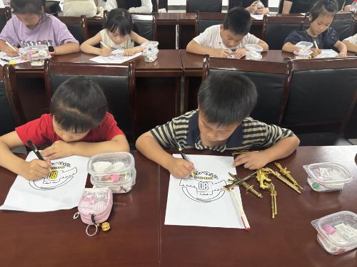 宣讲结束后,活动进入互动环节。孩子们迫不及待拿起画笔,在印有长城、橄榄枝等历史符号的填色材料上挥洒创意。涂色过程中,团队成员耐心引导孩子们思考这些符号背后的历史内涵,帮助他们将艺术表达与历史感悟相结合,在涂色过程中进一步理解符号内涵。随后的石膏娃娃彩绘环节更是激发了孩子们的无限创造力,他们用五彩斑斓的颜料描绘出心中的和平愿景和对抗战英雄的敬意。一位小朋友举着自己的“抗战小英雄”石膏娃娃说道:“要把娃娃涂漂亮,才对得起打仗的英雄!”