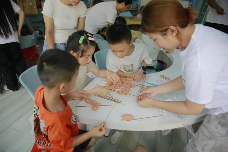 三天的活动,不仅是一次知识的传递,更是一场跨越两千年的航海文明对话。队员们将郑和下西洋、海上丝绸之路、现代航海科技等宏大主题,转化为孩子们可听、可看、可触的体验课堂。2025年8月10日上午10点,宣讲员李文豪以郑和下西洋620周年为契机,生动演绎从古代“水密隔舱”到现代巨轮的壮阔航程。通过亲手制作“羊皮筏子”模型,在浮力实验中亲身体验古人的非凡智慧;2025年8月11日上午9点至11点20分,宣讲员张梦雪创新融合红色教育与海丝非遗,以冠头岭、北海老街为坐标,通过击鼓传花游戏,重现航运先辈抗战救国的壮烈史诗。同时宣讲员陶畅和北海孩子们化身“古代珠宝商”,用黏土创作海洋珍宝;2025年8月12日收官日上,宣讲员古诗颖聚焦国家级非遗北海贝雕,巧妙串联起古代海丝千帆竞发的辉煌与当代航运的智能蓝图,展望未来航运前景。从首日“羊皮筏子”中复原水密隔舱的古船智慧,到次日红色航运故事与海丝珠宝手工中的文化交融,再到收官日贝雕航海图所激发的航运梦想。队员们以多元方式唤醒海洋记忆,让北海少年在跨越时空的航海之旅中,深度感知中华民族的海洋情怀与开拓精神,埋下一颗承载蓝色基因的种子。