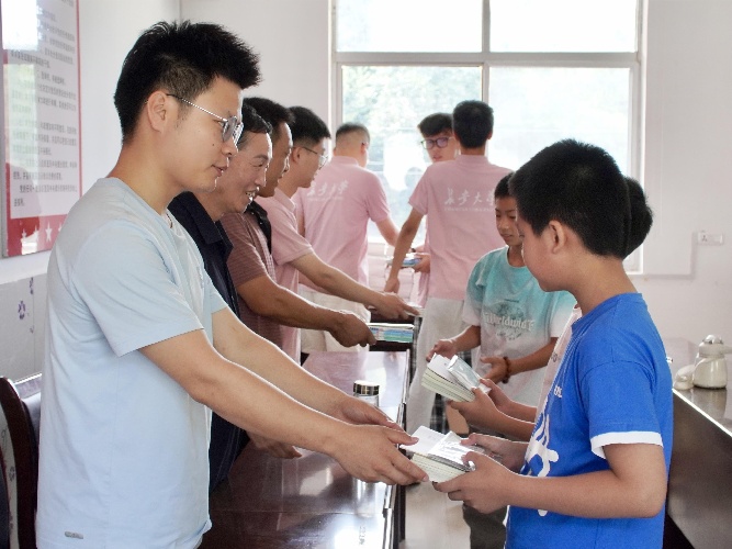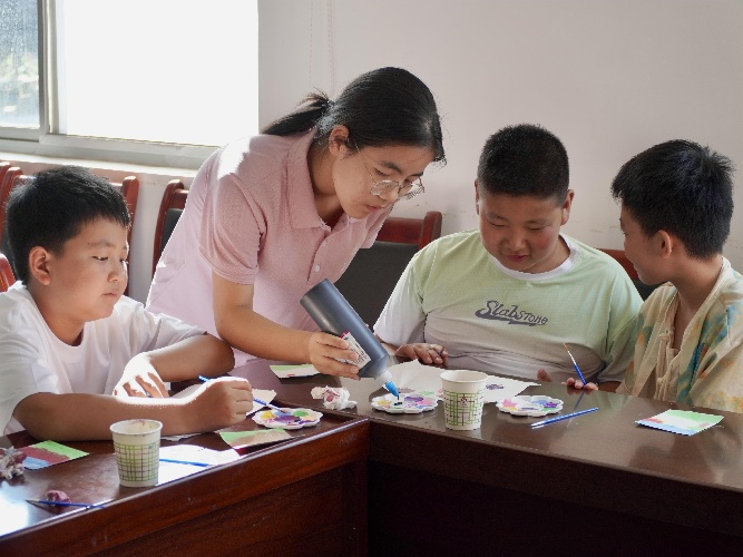 实践队以教育帮扶与文化传承双轨并进,构建起“安全+文化+学业”三维帮扶体系。安全教育课上,孩子们在众多案例中学习避险小知识;趣味榫卯积木拼装环节,孩子们在动手实践中感悟古建筑智慧;红色教育课上,孩子们在钱学森归国事迹和少年英雄故事中厚植家国情怀。捐赠的400余册图书和100余套文具,搭配艺术课、学业辅导等特色活动,契合孩童成长所需。这场盛夏之约,是青春与乡土的双向奔赴,智慧与童心的美好碰撞,深刻诠释了青年学子服务乡村振兴的使命担当,其点燃的火种必将照亮孩子们的前行之路。