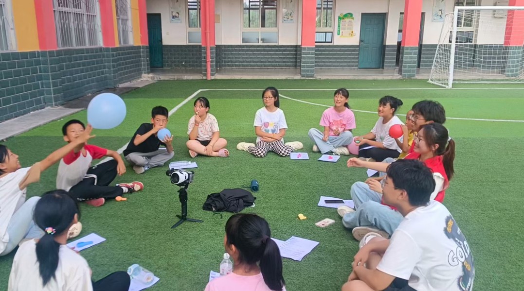 图为实践团成员带孩子们做游戏。王一坤 供图
