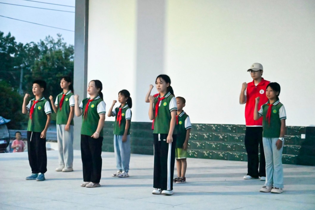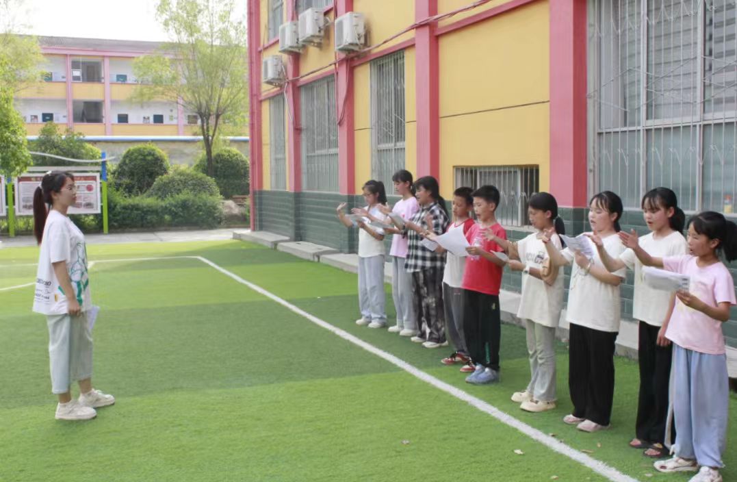 实践团精心设计了《讲好中国话》节目,孩子们在汇演时自信演绎集体朗诵与绕口令,从羞涩到昂扬的蜕变赢得满堂掌声,清亮童声传遍乡野:“一字一句中国话,千言万语传天下……”