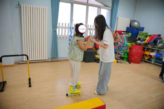 7月28日至8月1日,服务队持续在滨海学院特教中心开展服务。队员们通过一对一课业辅导、感统训练、轮滑教学、水枪游戏等活动,耐心协助教师完成教学任务,密切关注特殊儿童的认知和行为表现,在跳绳、哑铃、跨越障碍等训练中提升孩子的身体协调能力。室内自由活动时间里,队员们陪伴孩子完成钻石贴画、共读图画书,在细致互动中培养其专注力和表达能力。此外,队员们还积极承担后勤保障、安全看护与应急处理等工作,全面保障每日活动顺利开展。