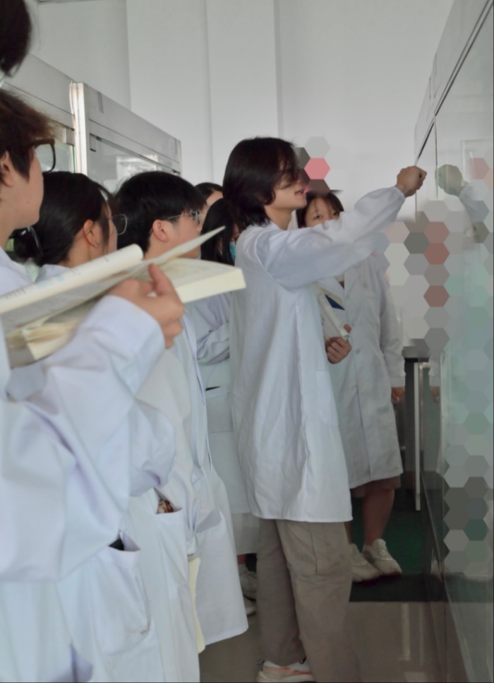 在实践期间,团队成员还组织进行了人体标本室的参观学习。整个过程以先由各小组各自参观并学习标本,然后每小组进行轮流汇报并由其他小组提问。通过观察标准标本,团队成员能更加精准地定位解剖结构,明确制作标本时要保留的重要结构,从而减少操作错误,提升标本制作治疗并培养严谨的科学态度。小组讲解也锻炼了团队成员的分析与表达能力,而提问环节则直击实操痛点,这种“观察——总结——答疑”的模式能够有效提高学习效率,使团队成员对后续制作标本充满信心。