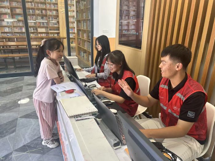 没过多久,就见三三两两的家长牵着孩子往里走。穿碎花裙的阿姨攥着女儿的小手,穿着朴素的爷爷半弯着腰,听身旁的小男孩叽叽喳喳说着什么,每个人脸上都带着几分好奇。看见孩子们进来,我和另外两位值班队员立刻迎上去,递上了报名登记表并准备好了签字笔。“小朋友下学期上几年级呀?”队员十分温柔的问孩子们。小男孩有些怯生生,瞪大了眼睛看我们。家长在一旁笑着补充说:“下半年该上上五年级啦。”我负责高年级同学招生,便主动询问报名表上的各个问题并认真记录下来。整个报名流程结束,家长笑着感谢我们,小男孩也不再像一开始那样紧张了,看到这样的场景,我的内心也涌出一阵阵的感动。