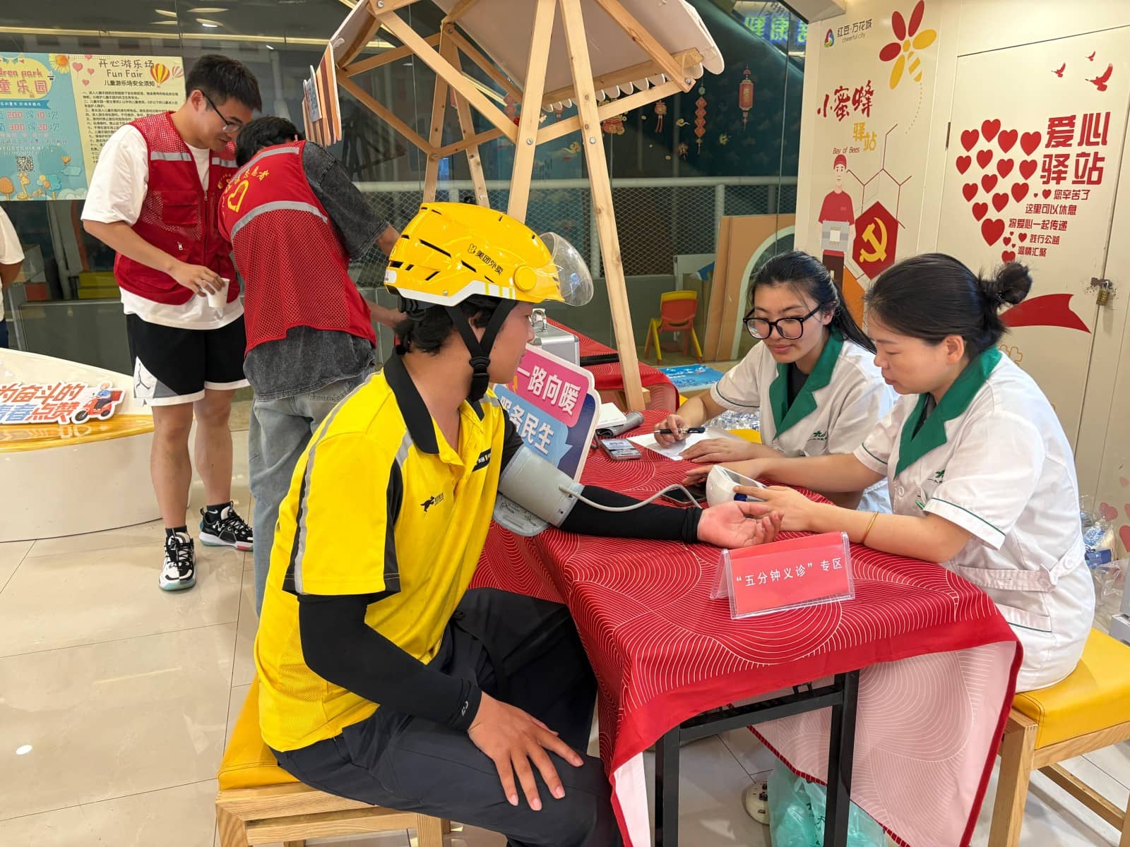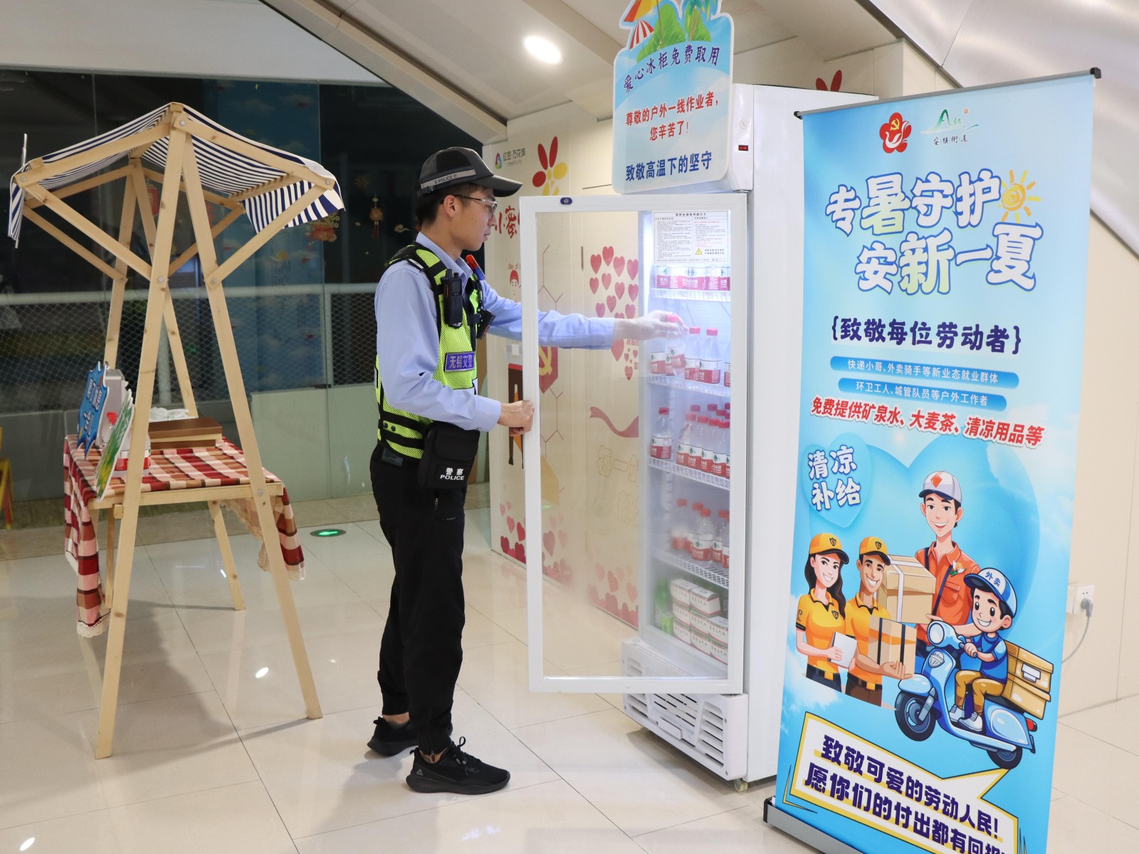 高温下的“清凉站”:回应户外工作者急难七月的无锡持续高温,午后路面温度常超35℃。户外工作者们顶着烈日作业,补水、降温成了急需。补给站里,韦志勋每天提前到岗,整理矿泉水、藿香正气水等物资,检查药品保质期。7月23日,一位环卫工李阿姨因高温头晕,他及时递上清凉油和温水,协助休息缓解。“这些孩子在,我们心里踏实多了。”李阿姨的话道出了不少户外工作者的感受。