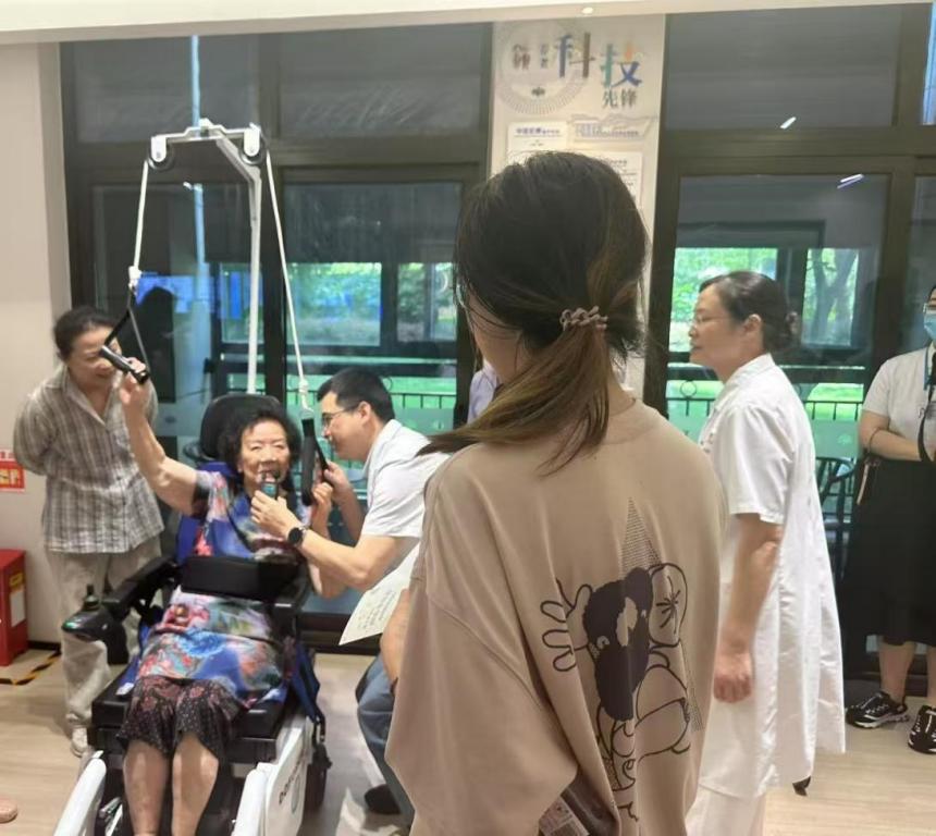 图3:成员在“智慧养老院”聆听老人讲述体验感受