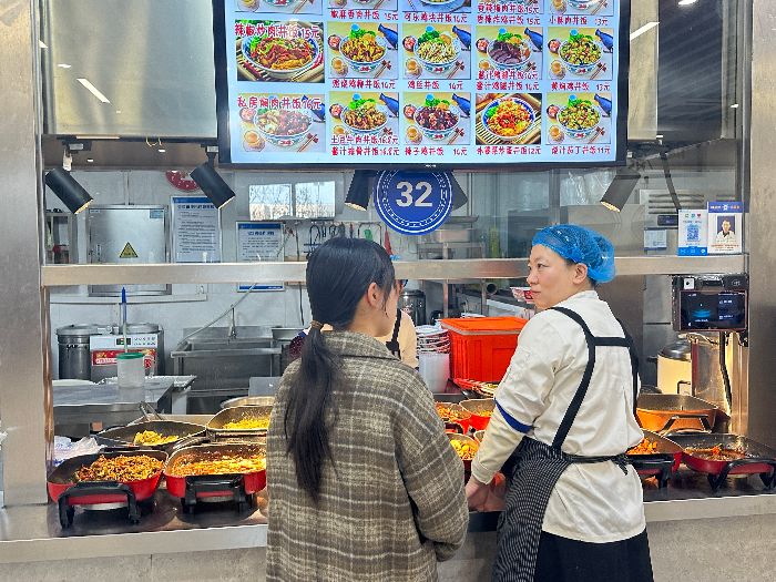 在中心食堂的窗口前,成员们逐一记录菜品名称,重点标注红枣豆浆、杂粮饭等含养生元素的餐品,同时与档口师傅交流此类餐品的每日销量、食材采购频率,初步摸清中心食堂养生相关餐品的供给基础。
