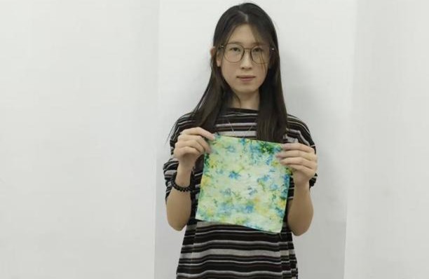 实践环节里,同学们以小组为单位动手实践:从折叠布料、捆扎打结,到调配染料、浸润上色,再到拆开绳结、展开成品,每一步都充满创意与期待。过程中,大家相互交流技巧,分享创作思路:有的用皮筋捆出几何纹样,有的以线绳勒出晕染肌理,在红蓝绿等染料的晕染下,原本素净的白布逐渐呈现出独特的图案——或如星云流转,或似水波荡漾,每一件作品都带着独有的手工温度。