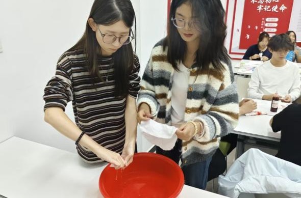 为引导学生在动手实践中感受传统工艺魅力,培育劳动精神,增强文化自信,河北化工医药职业技术学院质量检测与管理系于2025年11月5日下午7点开展“染韵千秋,手作传情”扎染体验活动,各年级学生代表齐聚一堂,解锁手工新技能,把独一无二的美好“染”进日常。