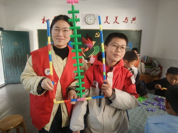 (队员与小朋友们亲手搭建管道 李瑞琦 供图)