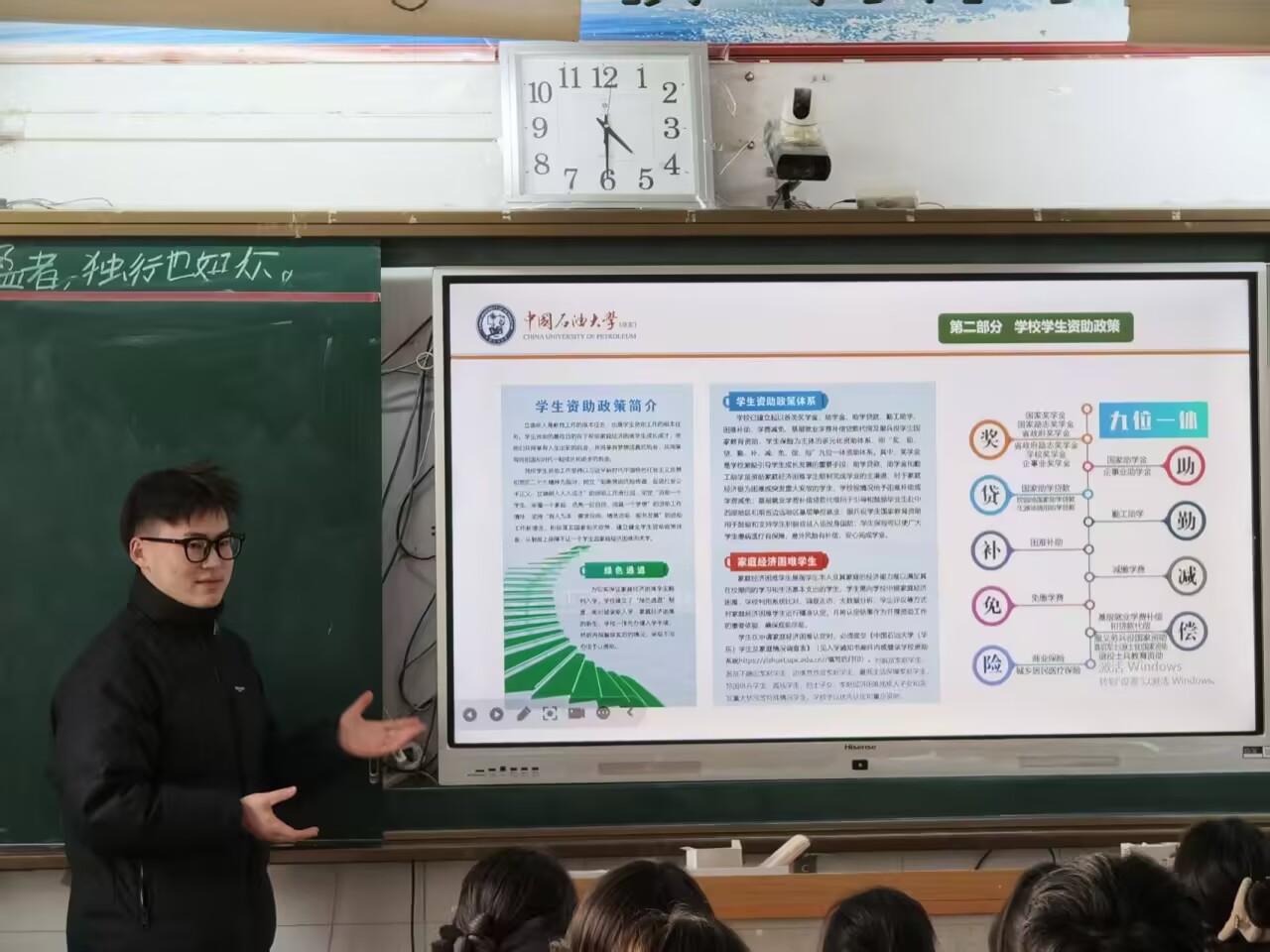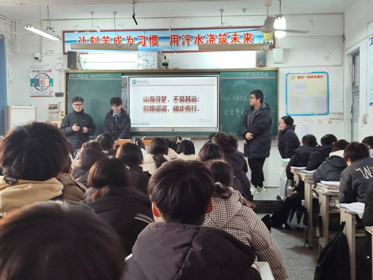 2026年1月26日,中国石油大学(华东)石油工程学院学生刘俊辉返回母校河南省洛阳市新安县第一高级中学,面向高二年级两个班级的百余名学生开展了国家学生资助政策宣讲活动。