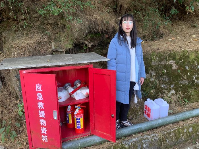 实践中,她系统学习了森林防火专业知识,全面了解火灾成因、预防措施与应急响应流程。在掌握理论的基础上,她更注重躬身实践。在护林员指导下,程奥婷积极参与步道沿线的火灾隐患巡查,认真检查并维护各类森林消防设施。她跟随护林队伍,沿古道开展常态化巡护,细致排查风险点。面对崎岖山路,她主动承担消防水桶搬运任务,将其安置于预设储备点,确保应急水源就近可用;同时,逐一清点步道沿线的应急救援物资箱,核对灭火器具、应急工具是否齐全完好,并做好记录与基础维护,使课堂所学与实地需求紧密衔接。这些具体而细致的工作,让她真切体会到“森林防火无小事”,每一次认真准备,都是对绿水青山最实在的守护。