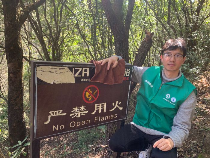 除了日常巡护,马睿也主动承担起森林防火宣传任务。他将公园内所有金属防火警示标牌擦拭干净,确保提醒清晰醒目;同时,在主要入口、步道旁和休息区张贴宣传标语,向游客与市民传递森林防火知识,呼吁大家共同守护这片绿色家园。