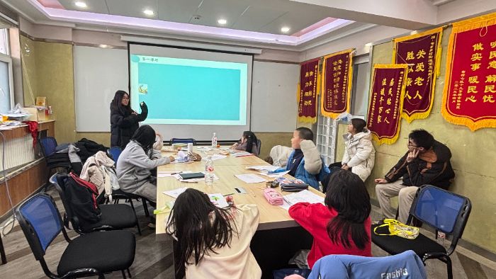 2026年2月3日,山东大学学生春晖社“柳荫春风”支教队抵达济南市甸柳五居,正式开启以“以爱为荫,化作春风”为主题的童心童趣寒假托管班。开营仪式上,支教队员武玉玮、帅志明、冉然、易心怡、卢胜男、纪若茜、钟鼎、夏京湘八名成员依次进行自我介绍,从“来自山大的大朋友”到“想和大家一起探索世界的伙伴”,简单的话语里满是真诚,也让社区孩子们感受到了陌生的温暖。