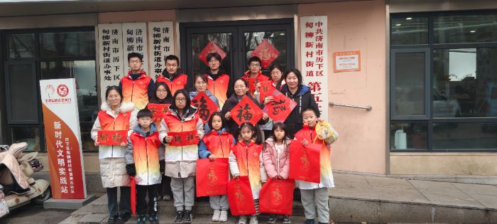 情暖社区:手写春联,传递温情趣味课程结束后,柳荫春风支教队的志愿者们带领济南电柳社区的孩子们,开展了“送春联、暖人心”志愿服务活动。孩子们带着提前准备好的春联,跟着志愿者走访社区独居老人,用稚嫩的声音送上新春祝福,亲手将红彤彤的春联交到老人手中。一句句问候温暖人心,一幅幅春联寄托祝福,在传递善意的过程中,孩子们也学会了感恩与担当,让“以爱为荫,化作春风”的口号落地生根。