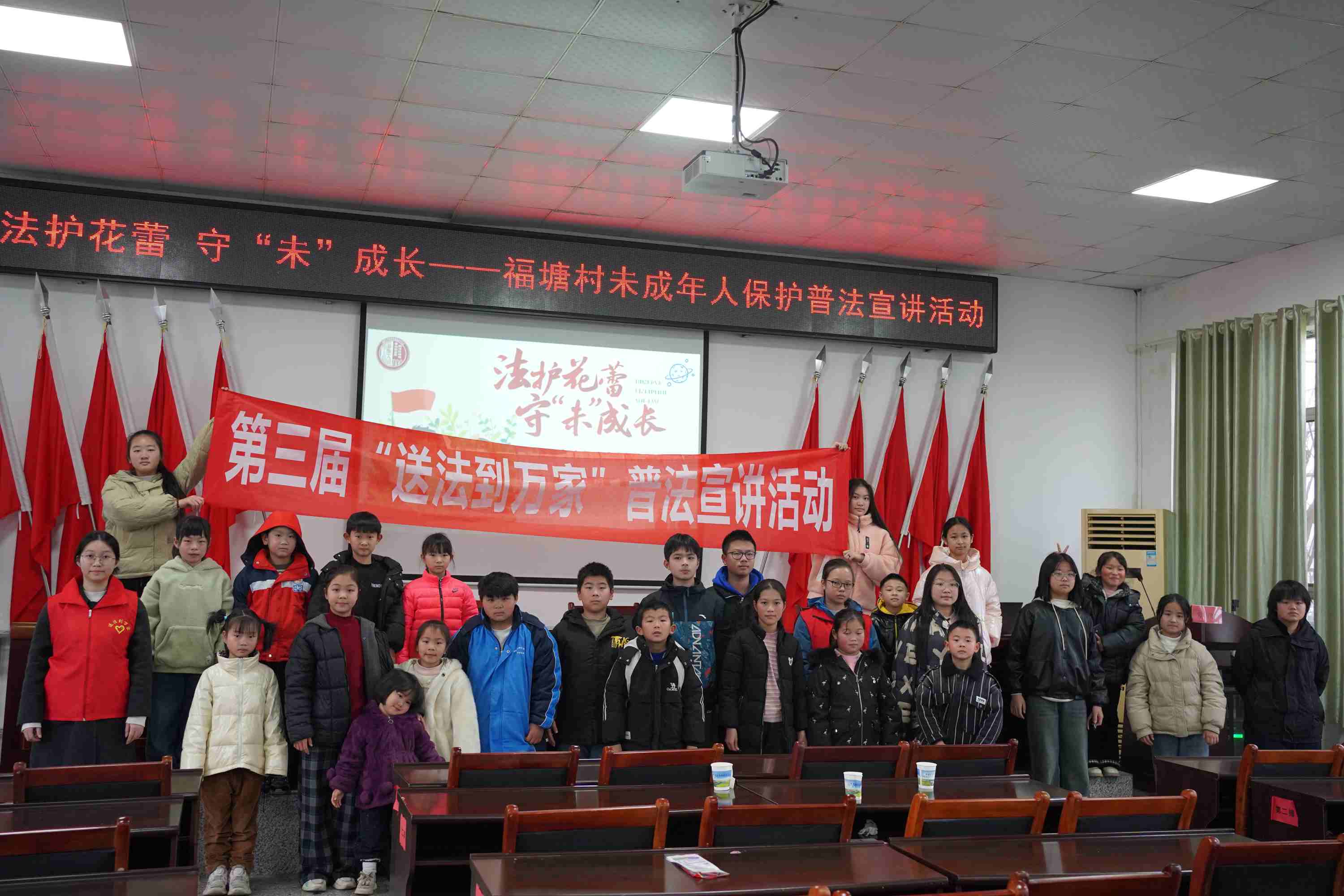 “寒假宣讲收官,但法治守护不会落幕!”2026年2月6日上午9点15分,长沙市望城区靖港镇福塘村文化活动中心内,第三届“送法到万家”普法宣讲活动迎来寒假期间靖港镇最后一站。“返家乡”志愿者曾涵睿为30余名未成年学生及家长带来专业细致的未成年人保护法宣讲,这是她寒假期间继复胜村、格塘村之后的第三场乡村普法服务,用专业与坚持为乡村未成年人筑牢法治“防护盾”。