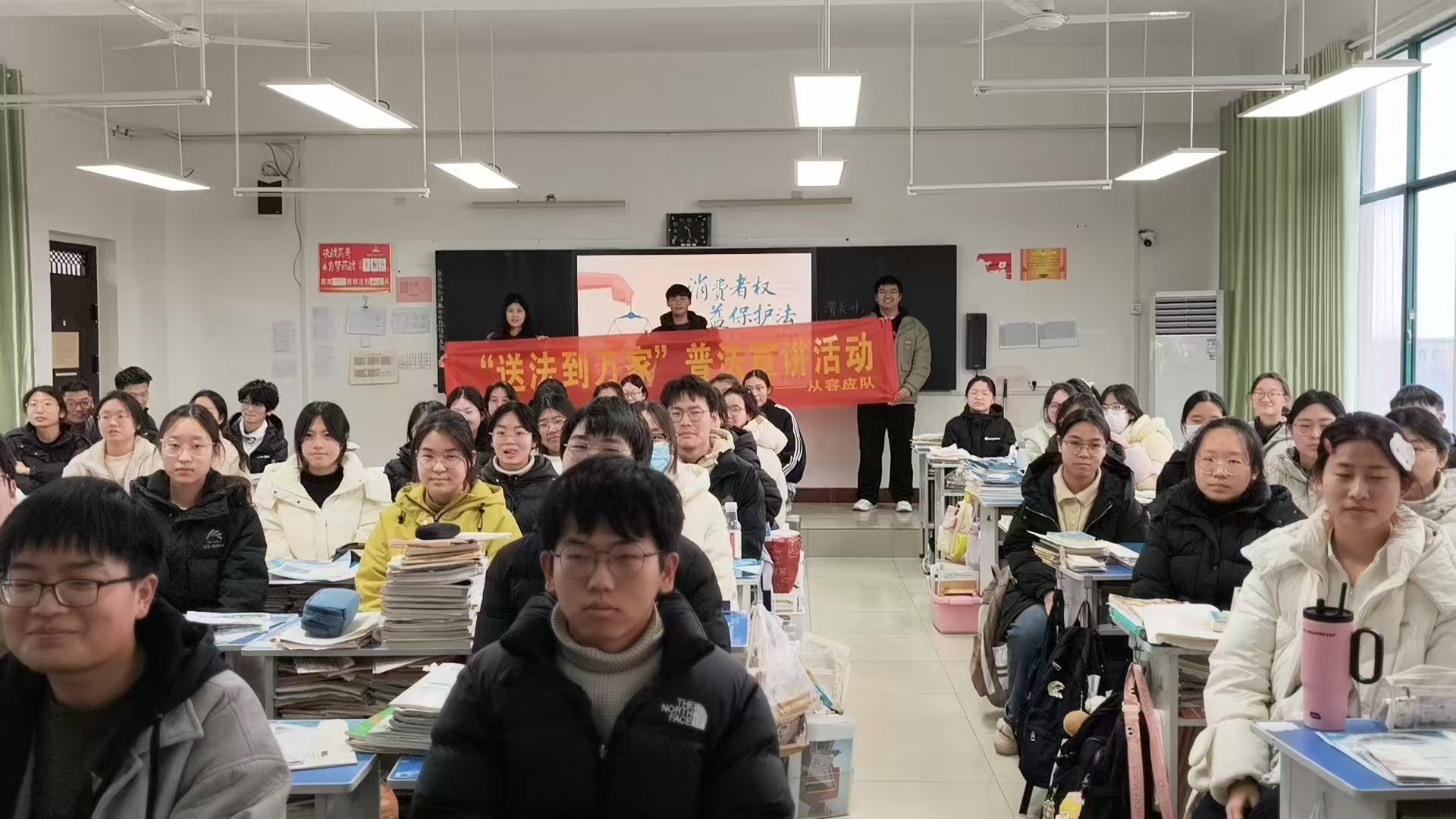 2026年2月6日上午,巩义市第二高级中学迎来了一场富有教育意义与时代气息的普法宣讲活动。由该校毕业生、现五名在校大学生组成的“从容应队”重返母校,成功举办了第三届“送法到万家”普法宣传活动。本次活动以“消费者权益保护法”为主题,通过生动讲解、案例剖析与互动交流,为高中师生带来了一堂贴近生活、实用性强、富有启发性的法治教育课。