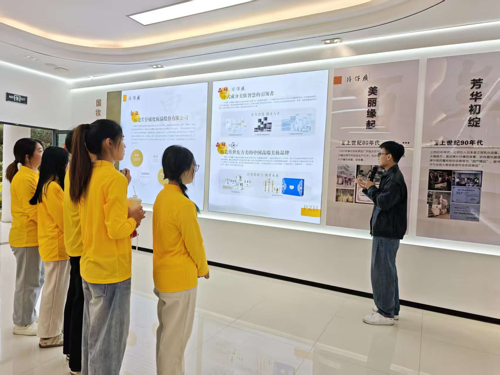 实践队队员在片仔癀化妆品展厅参观学习