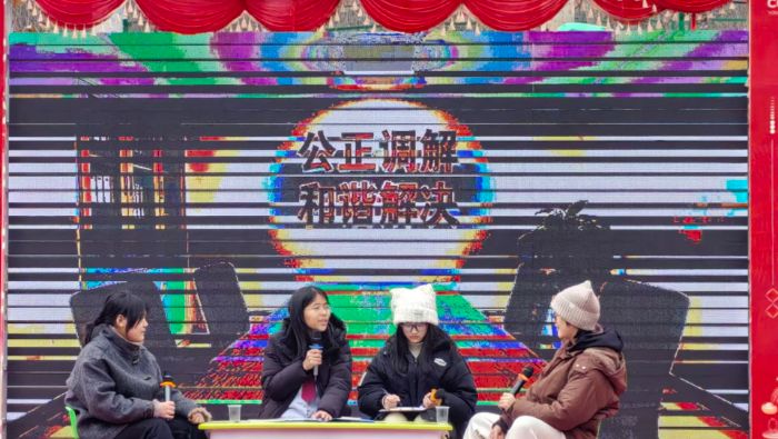 图3:冯安琪、吴欣然饰演的司法调解员以《民法典》为依据,情法交融开展调解