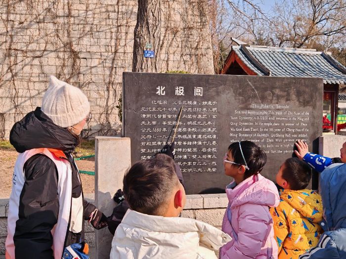 在上午的城市探索环节中,志愿者带领“小候鸟”儿童群体前往大明湖景区开展研学活动,以实景体验的方式打造“行走中的文化课堂”。冬日的大明湖水面澄澈,沿岸柳枝低垂,湖中栖息的野鸭群吸引了孩子们的注意。在志愿者引导下,孩子们结合眼前景象,齐声朗诵“竹外桃花三两枝,春江水暖鸭先知”等经典诗句,将自然观察与文学认知相融合。在夏雨荷花灯景点处,志愿者围绕济南地域文化,为孩子们讲解与荷花相关的历史典故及诗词内涵。孩子们积极参与互动,分享所学过的咏荷诗句,“接天莲叶无穷碧,映日荷花别样红”的诵读声在景区回荡,体现出文化传承与实景教学的有机结合。