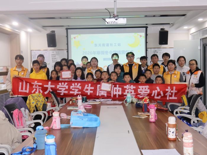 此次“小候鸟”冬令营是山大唐社践行社会责任的重要实践,旨在通过优质教育资源的下沉,丰富流动儿童的假期生活,助力他们拓宽视野、增长才干。五天的冬令营虽已落幕,但关爱“小候鸟”的行动从未停止。未来,山大唐社将持续关注流动儿童群体的成长需求,整合山东大学优质资源,开展更多形式多样的公益活动,用持续的陪伴与关爱,为孩子们的成长之路点亮明灯,让青春力量在志愿服务中绽放更绚丽的光彩。