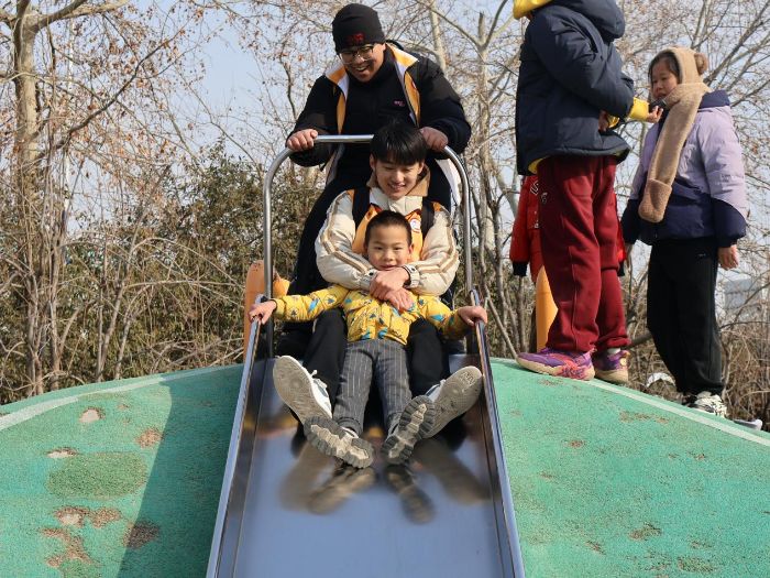 研学活动尾声,孩子们在儿童乐园开展自由活动,志愿者全程陪护,确保安全,并用影像记录下孩子们游玩时的欢欣时刻。此次活动在普及传统文化的同时,也注重关怀儿童身心发展,为参与儿童创造了充实而温暖的冬日体验。