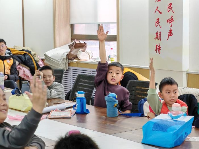 下午的结营仪式在温馨热烈的氛围中拉开帷幕。社工老师通过精心制作的图集,带领现场师生共同回顾了冬令营五天的精彩瞬间:从趣味英语课堂上的互动问答到科学实验中的动手探索,从演讲口才课上的勇敢表达到趣味阅读中的沉浸感悟,从非遗拓印时的匠心传承到数字世界里的AI科普,每一个片段都凝聚着孩子们的专注与成长,也见证着志愿者们的付出与坚守。分享环节中,孩子们争先恐后地举手发言,稚嫩的话语中满是收获与感恩:“我学会了拓印福牌,还知道了AI是怎么工作的”“志愿者老师教会我很多古诗,我想把拓印的福字送给爸爸妈妈”“这五天是我寒假最开心的时光,不想和老师分开”,真挚的表达让现场不时响起阵阵掌声。