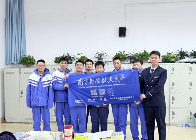 在“航天”母校:解开“冲上云霄”的密码 遵义航天高级中学的宣讲现场,飞行学员刘豪(化名)无疑是焦点。然而,作为团队队长的何飞深知,仅仅展示“飞行员”的光环远远不够。“我们最初筹划宣讲时,很怕变成枯燥的流程介绍,”作为团队队长的何飞坦言。他作为2025年遵义地区成功通过选拔的飞行学员,他的经历本身就是最生动的教案。为此,他反复打磨ppt,拆解了从报名、初检、复检、背景审查到高考录取的全流程,不回避其中的高淘汰率与艰苦训练。此外,他自费打印25年南方航空的招飞简章和招飞横幅,为这次的宣讲做好最坚实的后盾。