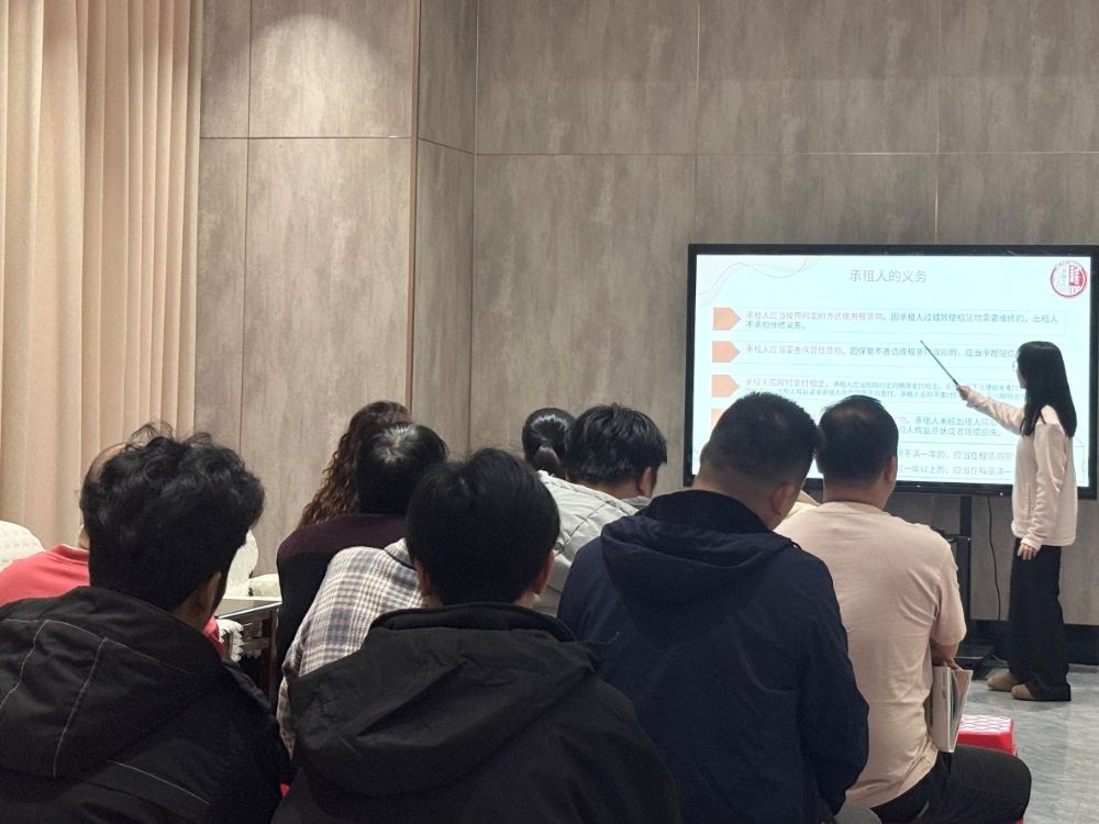 合同编的讲解以租赁合同为核心展开,援引《民法典》第七百一十二条、第七百一十三条等规定,引导职工聚焦租赁期限、租金支付、房屋维修责任、押金返还条件及合同解除情形等核心细节与关键条款。此外,宣讲员系统阐释了出租人与承租人各自的权利义务,并针对职工现场提出的“租赁期间房屋设施自然损坏由谁负责”“房东无故扣留押金如何应对”等实际问题,为职工处理租赁纠纷提供了明确的法律依据与具体的操作指引。
