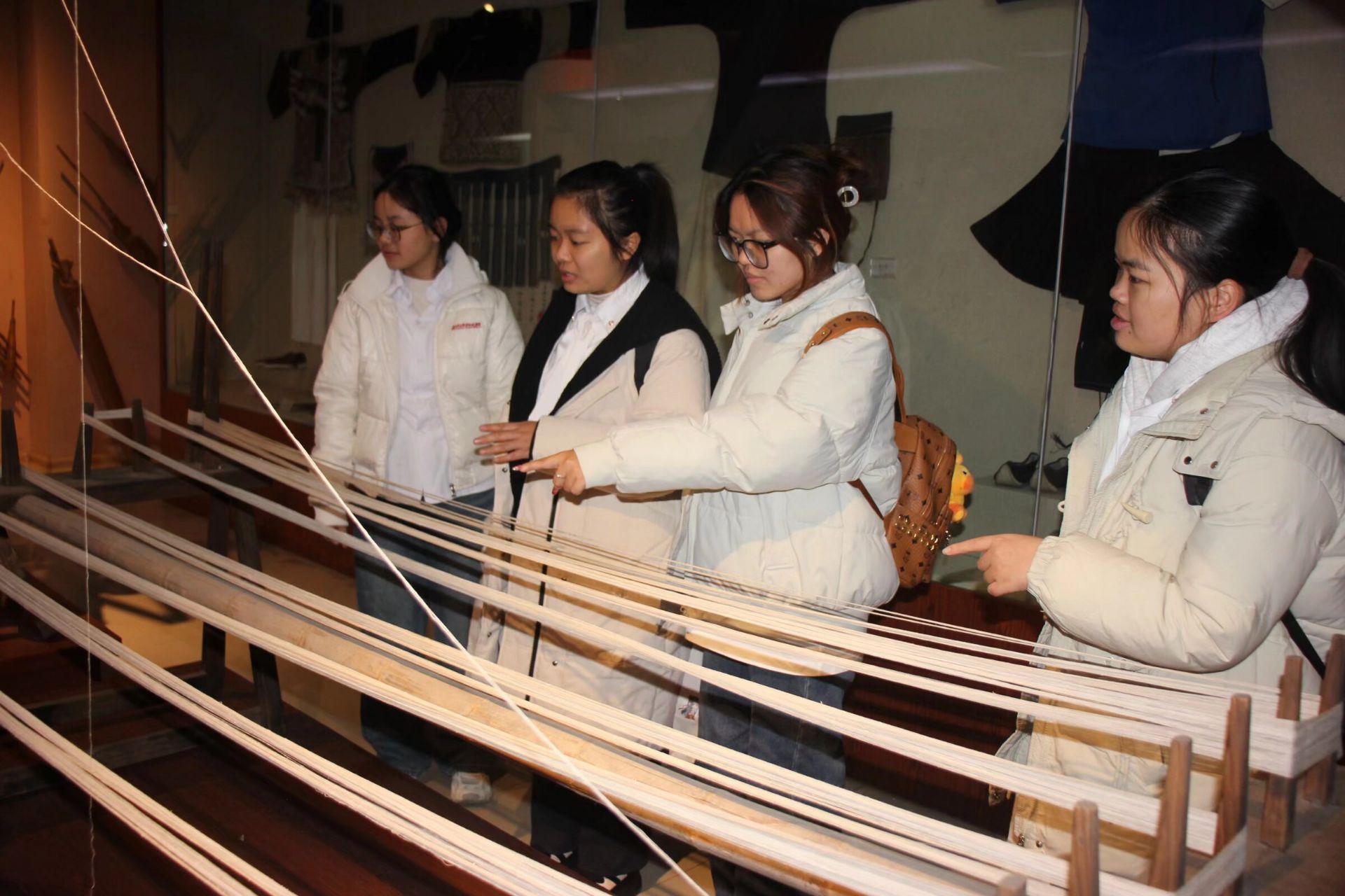 图为团队成员在侗绣博物馆参观侗锦纺织机李慧雯供图
