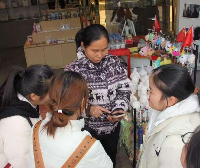 图为团队成员与文创店中实地调研江陈雪冰供图