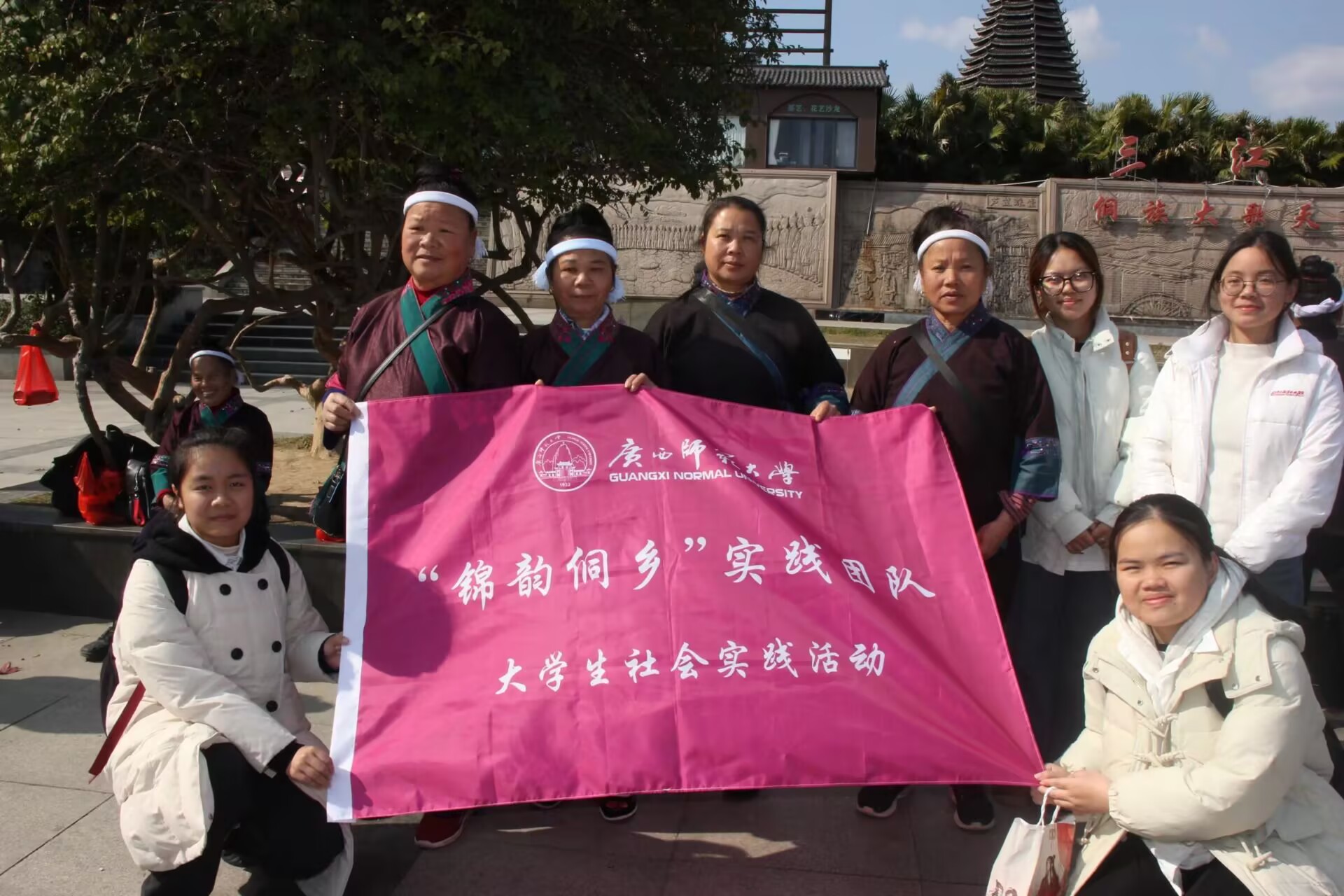 2026年1月12日广西师范大学讯为积极响应国家乡村振兴与非物质文化遗产保护协同发展的战略号召,深入探索民族传统工艺赋能地方发展的有效路径,2026年1月6日至9日,广西师范大学外国语学院“经纬侗行”社会实践团队,在周密的前期准备与详尽规划后,深入广西柳州市三江侗族自治县,开展了一场为期三天的深入田野调研。团队将目光聚焦于国家级非物质文化遗产——三江侗锦,致力于通过专业的学术视角与青年的创新实践,破解其在传承与产业转化方面面临的挑战,为“非遗+乡村振兴”战略贡献“师大智慧”与“青春方案”。