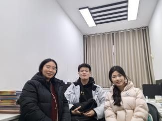 李旭同学在安阳一中宣讲 | 团队成员与高三班主任梁老师合影 |