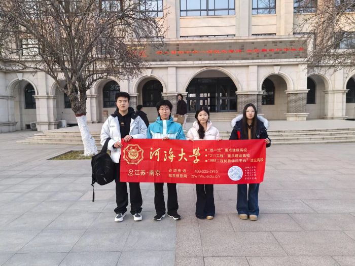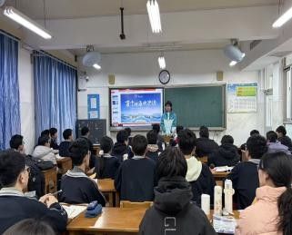 | 指导老师张云飞与高中宣讲负责人杨主任沟通 | 刘嘉普同学在殷都区第一高级中学宣讲 | 李旭同学在安阳一中宣讲 | 团队成员与高三班主任梁老师合影 |