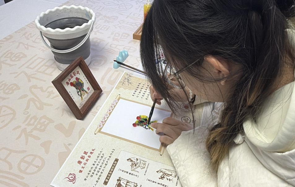 (图为在唐影匠工作室为皮影填色的照片 唐思宇供图)