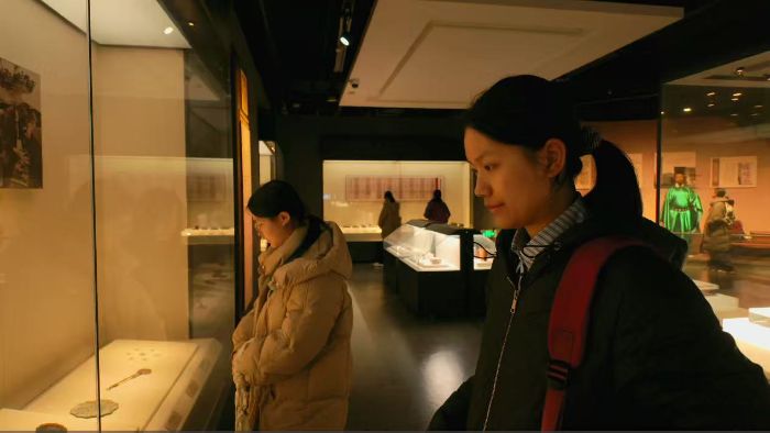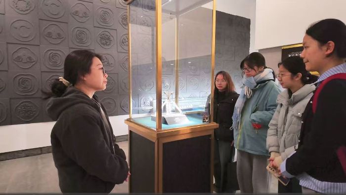随后,实践队先后走进福州市博物馆、福建博物院,将调研重点聚焦于饰品錾刻工艺。队员们通过细致观察馆藏同类饰品,对比分析三条簪与其他传统首饰在技艺手法、纹样设计上的共性和特性,深入探索纹样元素在阈地传统首饰中的跨地域应用规律,进一步挖掘三条簪工艺的文化价值与艺术特色。
