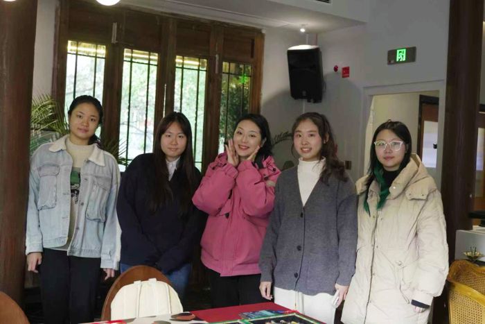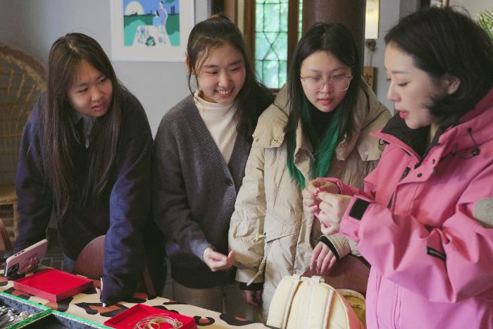 2 月 4 日,实践队在福州幸会艺术文化空间拜访了福州文旅推荐官兼三条簪非遗传播人胡蕾老师,就三条簪的当代审美价值及现代保护和传播路径进行深入探讨。在向队员们展示了自己的上百件、总计超过 10 万元的三条簪藏品后,胡蕾老师特别提到了“以妆造带非遗”的窗口,不仅让三条簪拥有能够在现代场景中“走出去”的机会,也生动地实践了总书记“推动中华优秀传统文化创造性转化、创新性发展”的重要嘱托,使得队员们更加坚定了以创新思维激活非遗基因、用青年行动践行文化使命的决心。