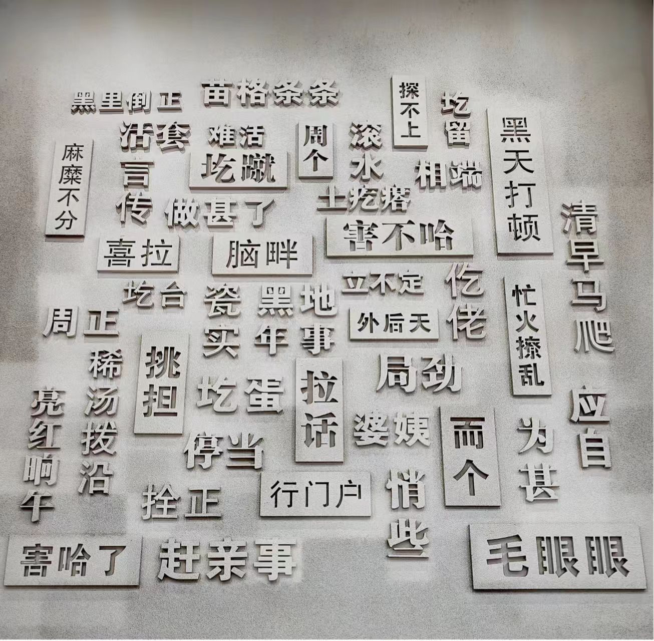 调研期间,团队成员主要到钟楼、回民街、永兴坊等街区,记录到嫽咋咧、么麻达、克里马擦、碎怂等经典陕西方言被制成标志牌、文化墙、创意雕塑,成为城市特色景观;同时,有不少餐饮门店、文创商铺也采用方言打造宣传语,既接地气又彰显地域文化,吸引市民与游客驻足打卡。部分街区还设置了有声方言装置,按下即可收听地道陕西话,让方言以更鲜活的方式融入城市公共空间。