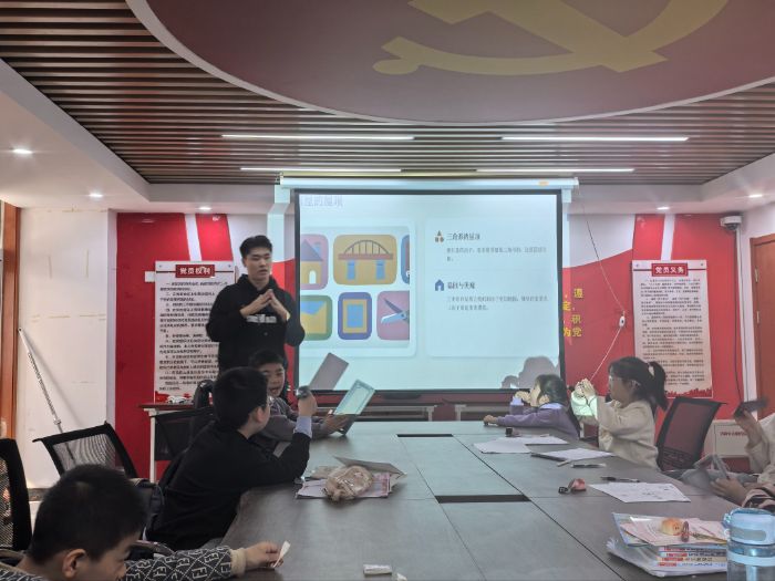 同日下午,孔一凡同学带领孩子们走进奇妙的数学王国,开启一场探寻三角形秘密的趣味之旅。课堂上,从直角、钝角、锐角的鲜明特点,到神秘的 π 的深层内涵;从三角板的规格形制,到弧度定义的趣味解读,孔一凡同学将抽象的数学知识转化为生动易懂的讲解,让孩子们发现数学并非枯燥的公式与计算,而是充满理趣与奥秘。原本看似 “尖锐” 的三角形,在趣味讲解中变得温情满满,孩子们紧跟老师的思路,沉浸在数学的奇妙世界里,主动思考、积极提问。这场别开生面的数学课,不仅让孩子们收获了数学知识,更让他们感受到数学的独特魅力,激发了对数学学科的热爱与探索欲。