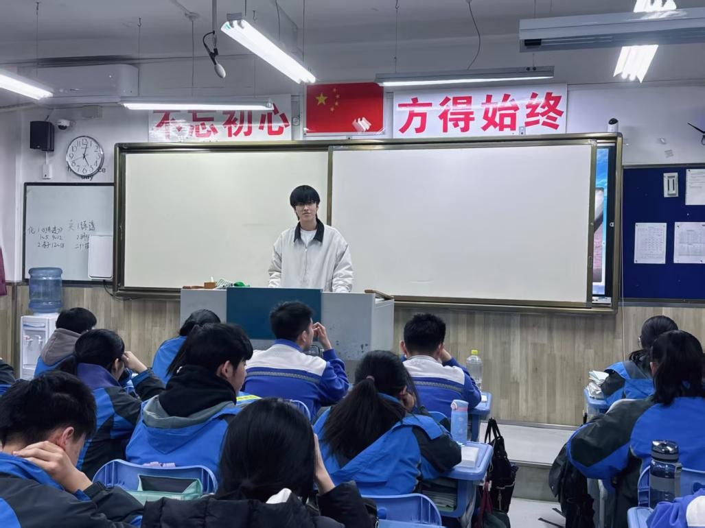 在学习经验分享环节,赵鹏渊同学结合自身高中备考经历,坦诚讲述了曾经遭遇的学习瓶颈与突破方法,从合理制定学习计划、高效利用碎片时间,到调整备考心态、缓解学习压力,毫无保留地分享实用技巧;同时详细介绍了大学学习与高中学习的差异,鼓励学弟学妹们既要脚踏实地、夯实基础,也要保持对未知世界的探索欲,坚定理想、奋勇前行。