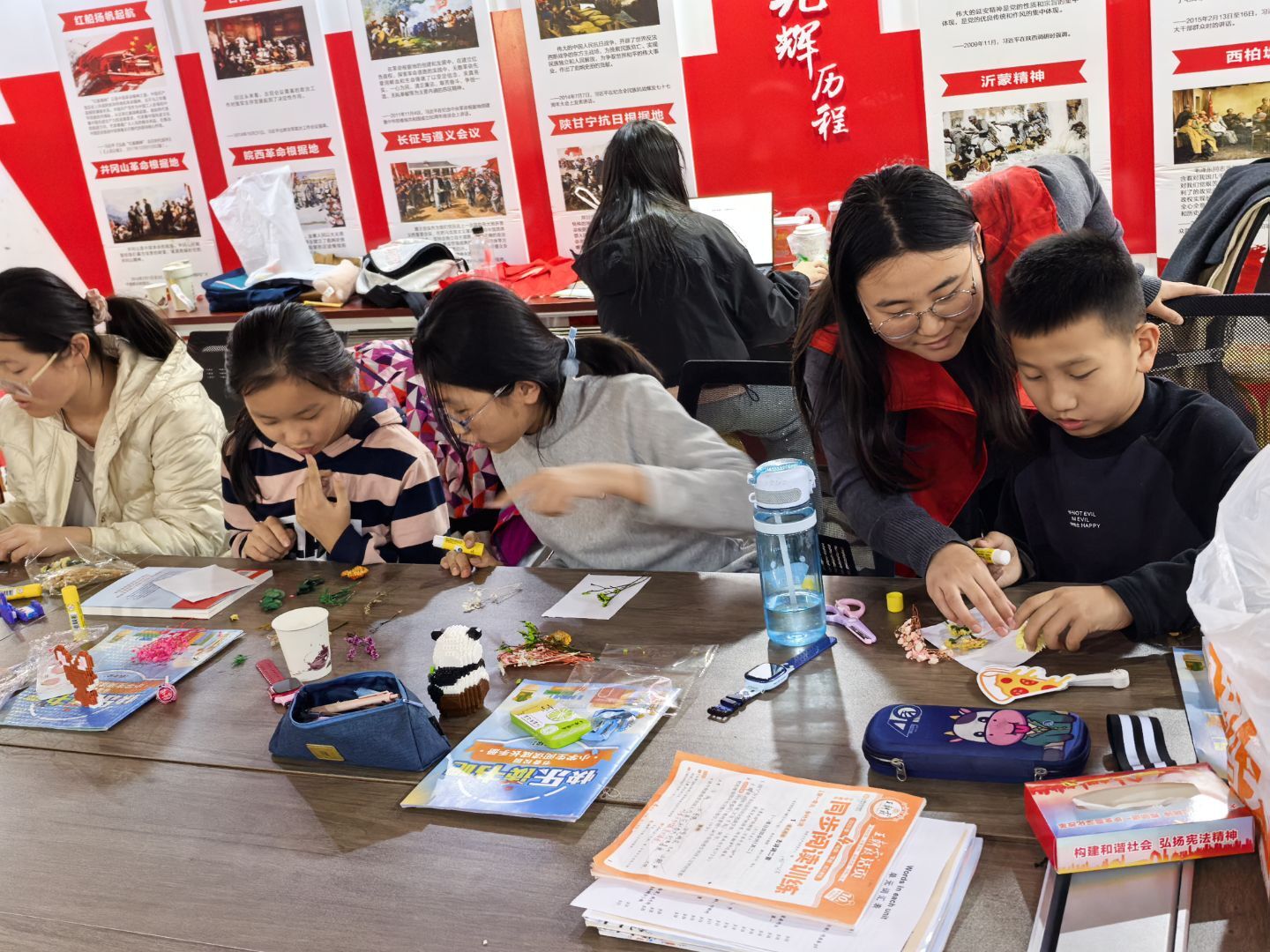 一天的课堂接近尾声,杨潇妍老师带来的手工课,为这充实的一天增添了一抹浪漫与创意。课上,老师为孩子们准备了色彩斑斓的干花、木叶和胶水,耐心讲解干花拼接的技巧与方法,鼓励孩子们发挥想象力,将手中的干花、木叶组合成自己心中的模样。孩子们兴致勃勃、积极参与,指尖翻飞间,一朵朵干花错落摆放,一片片木叶巧妙搭配,每一件作品都独一无二,承载着孩子们的创造力,也藏着他们对春天的无限向往与热爱。