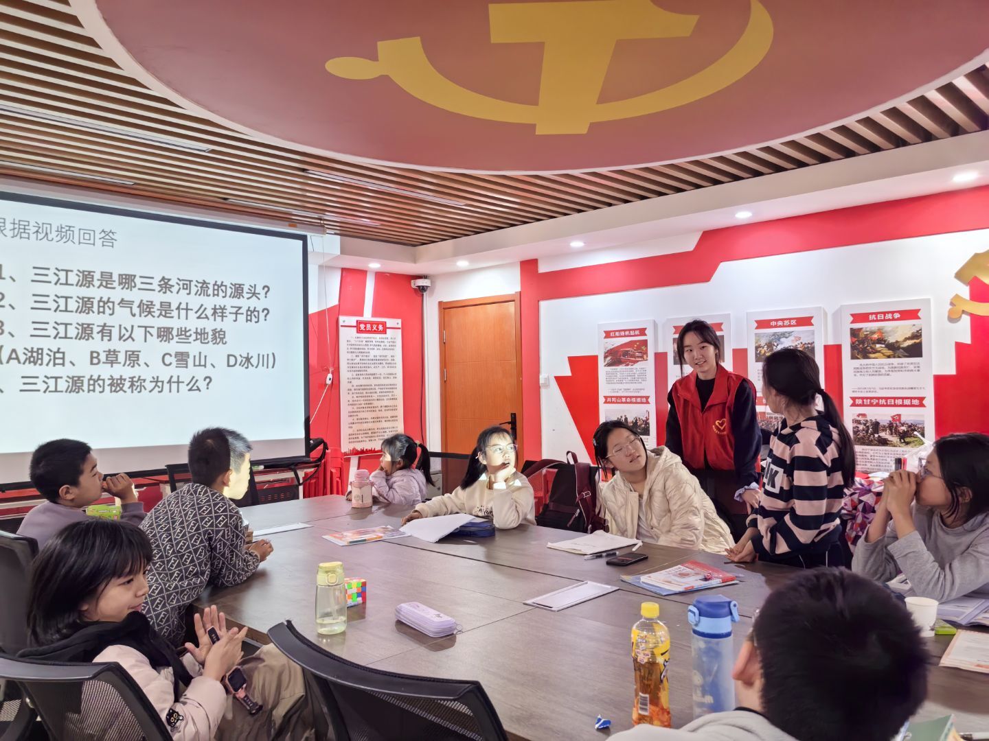 午后的阳光愈发柔和,课堂的氛围也愈发活跃。朱若溪老师带来的“趣味山河”课,仿佛为孩子们打开了一扇通往远方的大门。老师结合丰富的图文素材、生动的视频片段,逐一讲解祖国大地上不同山脉、河流的特点。孩子们睁着好奇的眼睛,认真聆听、积极举手发言,主动分享自己心中的山河模样,在潜移默化中感受祖国山河的辽阔与壮美,增强了对家乡、对祖国的热爱与自豪。