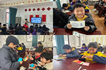 上午的传统文化课上,志愿者薛竹吟、苏瑾以“青花瓷”为主题,带领孩子们走进中国古典美学的世界。从元代青花的历史渊源到缠枝莲、云龙纹等经典纹样,两位老师娓娓道来。孩子们手握画笔,在纸盘上认真描画,一笔一划间,素雅的青花图案渐渐成形。“老师,你看我画的这个像不像?”学生们纷纷举起自己的作品,眉眼间满是得意。